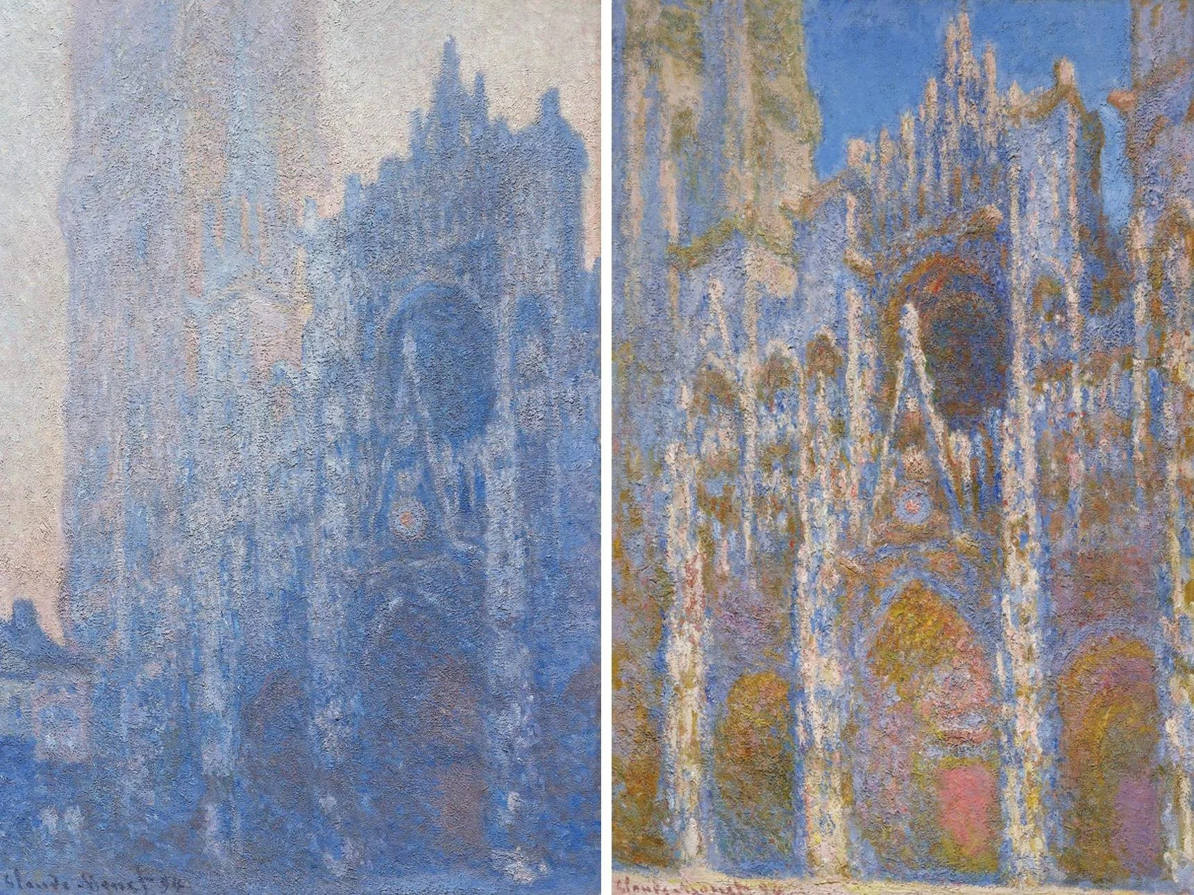 Left: Claude Monet, Rouen Cathedral Façade and Tour d’Albane (Morning Effect) (detail), 1894. Oil on canvas. Tompkins Collection—Arthur Gordon Tompkins Fund