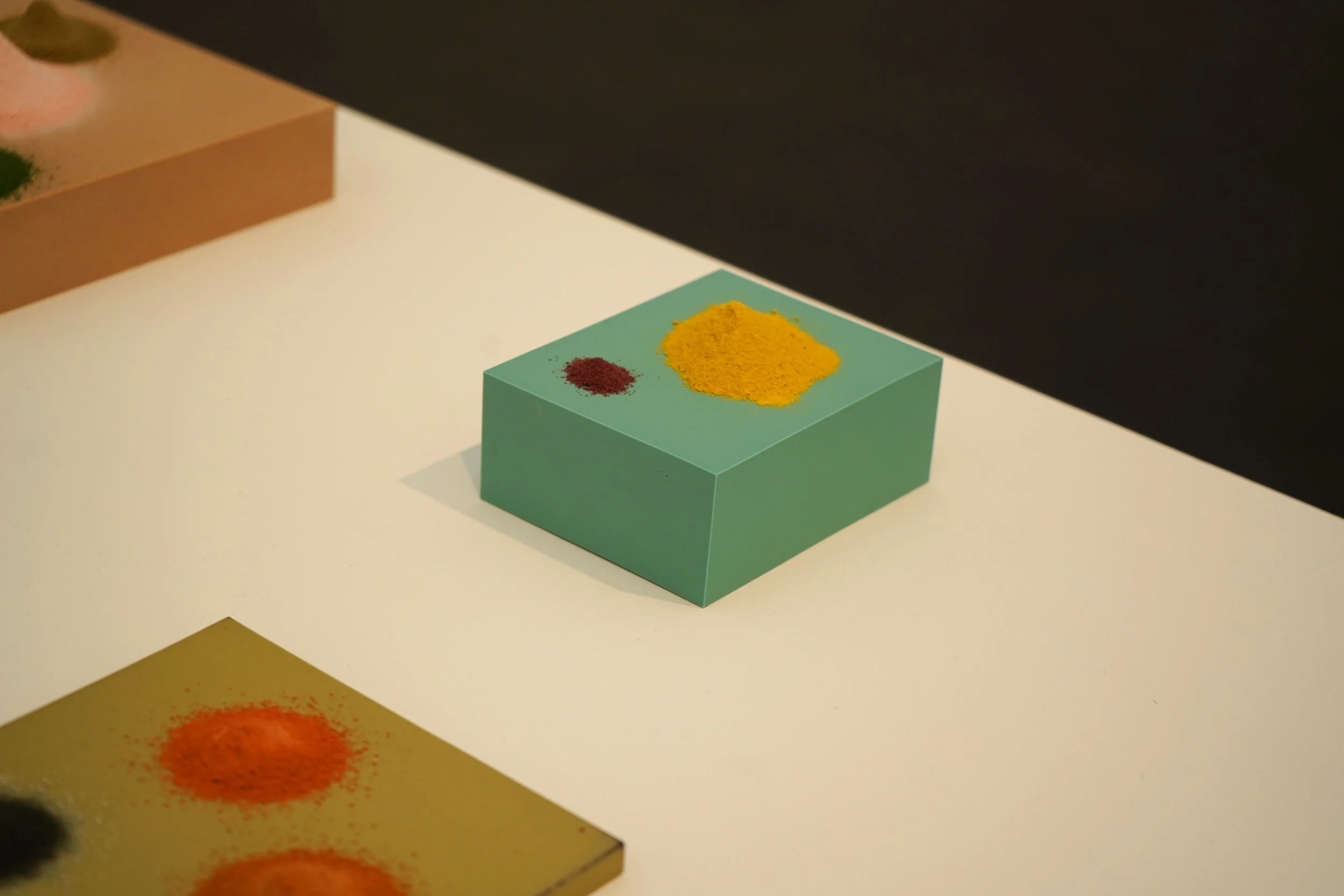 When considering perception, Sam Bakewell’s work draws attention through its attentive craftsmanship. In the Dust series, the delicate piles of powder appear as if they could be blown away at any moment, creating a sense of fragility. The carefully chosen colour contrasts draw the viewer closer, encouraging a closer look at the fine details.